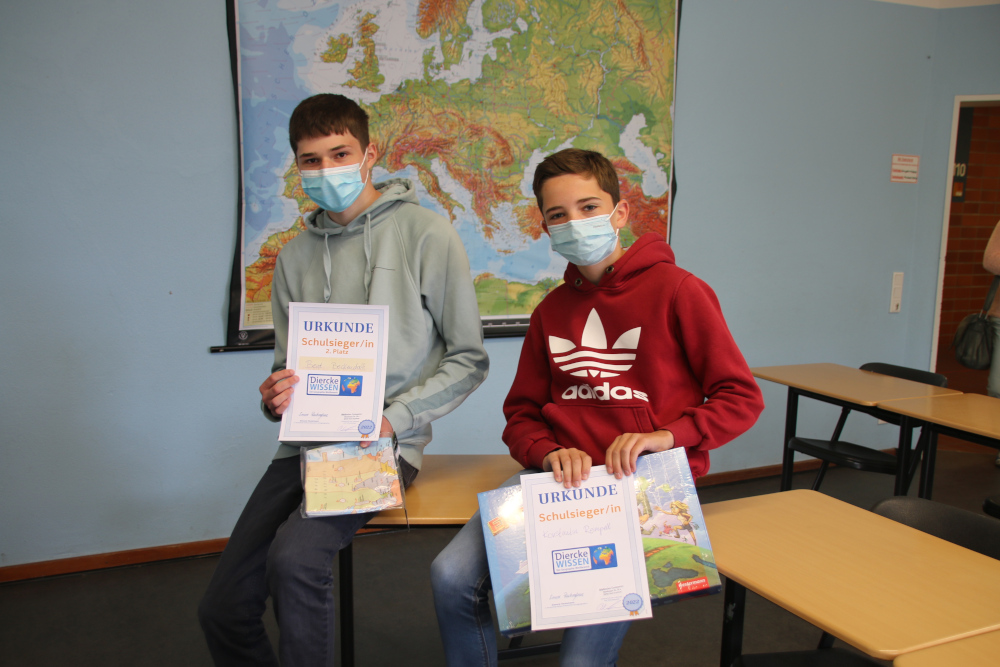In diesem Jahr konnte wieder der Geographie-Wettbewerb stattfinden. Während die 5. und 6. Klassen an dem Junior-Wettbewerb teilnahmen, nahmen die Schülerinnen und Schüler der 7., 8. und 9. Klassen am Diercke WISSEN Wettbewerb teil. Die Sieger des diesjährgen Wettbewerbs sind: